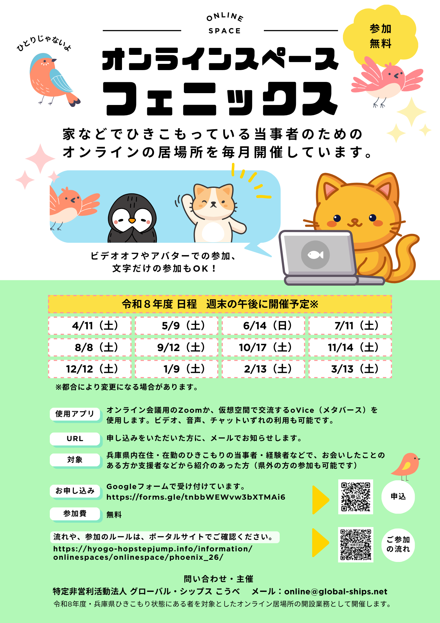 4/11(土)に2026年度の第1回オンラインスペース・フェニックスを開催します。